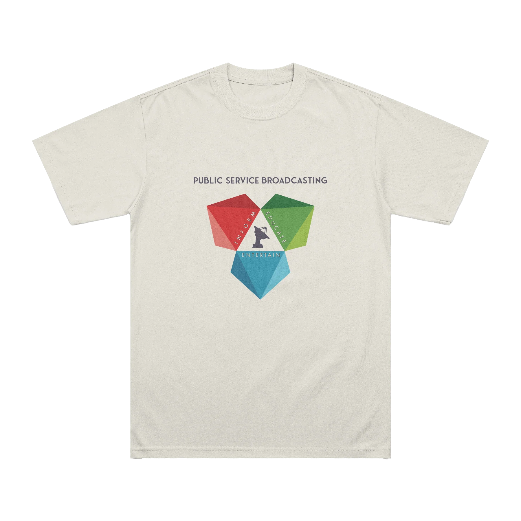 T-shirt available in green, off-white and black, with the album artwork from Public Service Broadcasting’s acclaimed debut album, Inform – Educate – Entertain. 100% organic cotton. 180gsm.